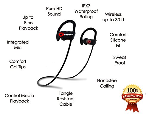 -. Title : Bluetooth Headphones, Senzor Magicbuds Wireless Headphones, Sweatproof -Premium Sound with Bass, Noise Cancelling -Ergonomic Design , Secure Fit -Bluetooth V4.1 -Zippered Case -7 Hours Playtime