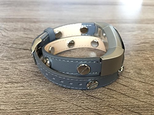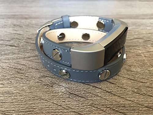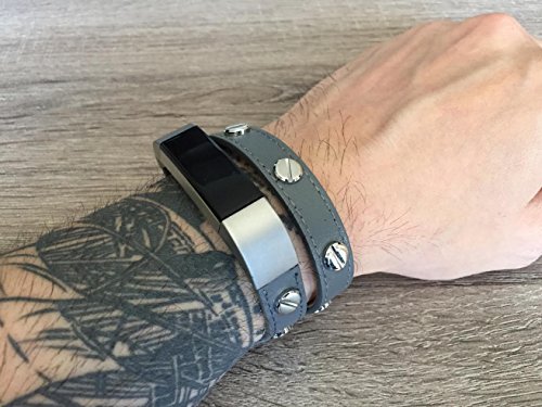 -. Title : Double Wrapped Designer Grey Leather Band For Fitbit Alta And Alta HR Handmade Eco Friendly Bracelet With Multiple Silver Rivets By BSI