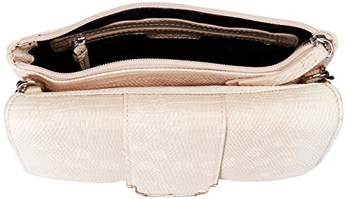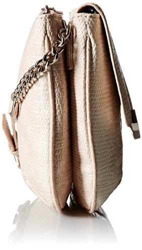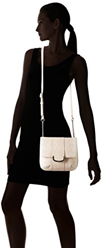 Chain detail on strap, sleek hardware with logo, 1 back exterior zipper pocket