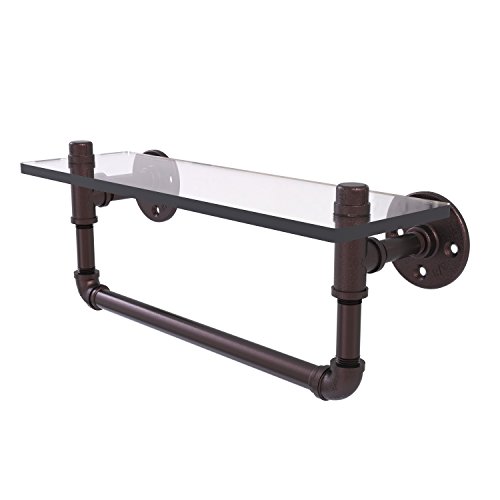 Allied Brass P-410-16-GSTB-ABZ Dottingham Collection 18 Inch Towel Bar with Integrated Hooks Pipeline Glass Shelf, 16"