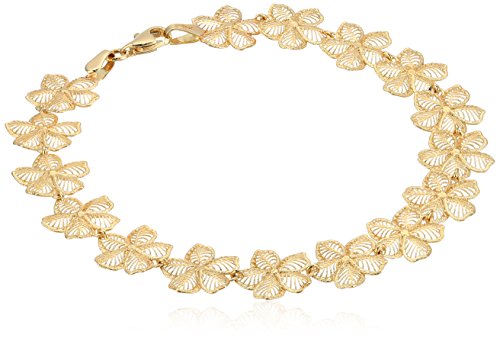 -. Title : 14k Yellow Gold Hibiscus Flower Bracelet, 7.5"