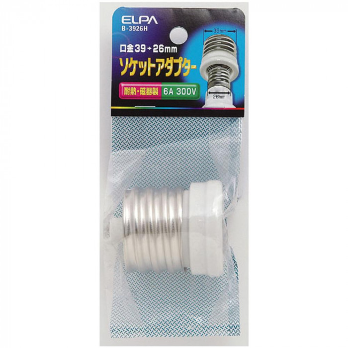 口金26mmの電球を口金39mmの電球ソケットに取り付ける為の変換アダプターです。陶磁器製ですので、耐熱性にも優れています。