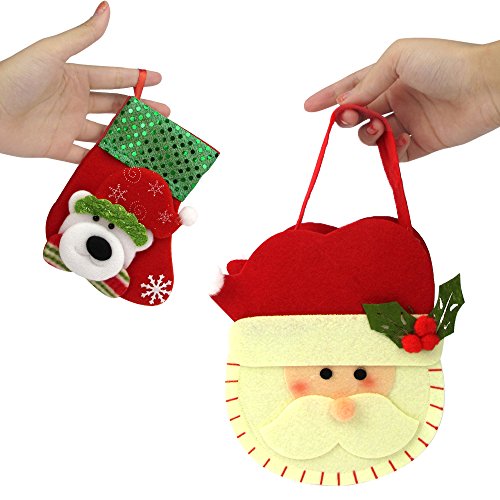 - 10 Christmas gift bags include: 8 Christmas stockings (2 Santa Claus, 2 snowmen, 2 elks, 2 bears) and 2 bags (1 snowman, 1 Santa Claus).