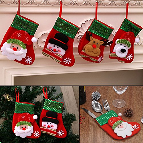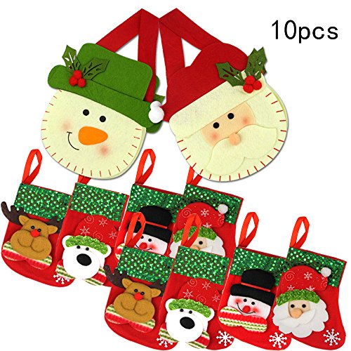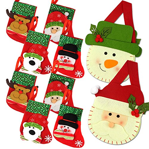SHAN RUI 10pcs Mini Cute Christmas Gift Bags Treat Bags (8 Christmas Stockings and 2 Christmas Bags) for Christmas Decorations Christmas Gifts