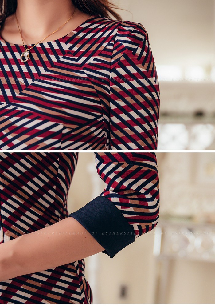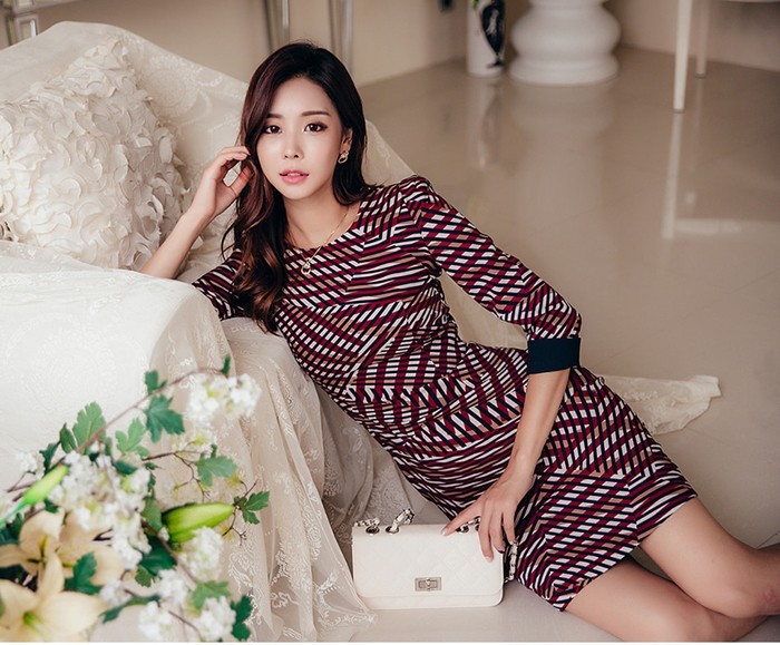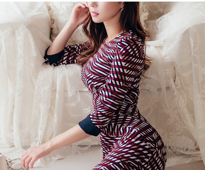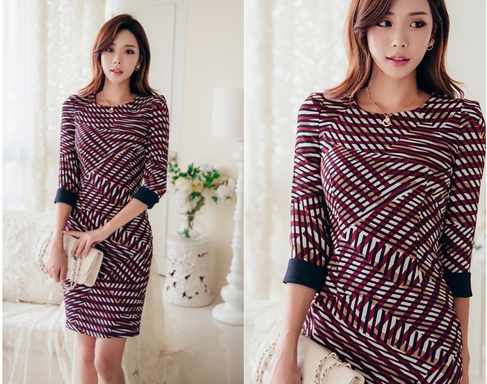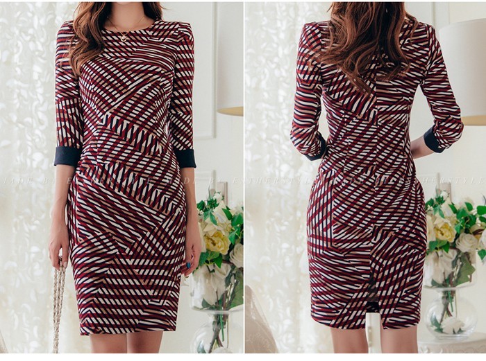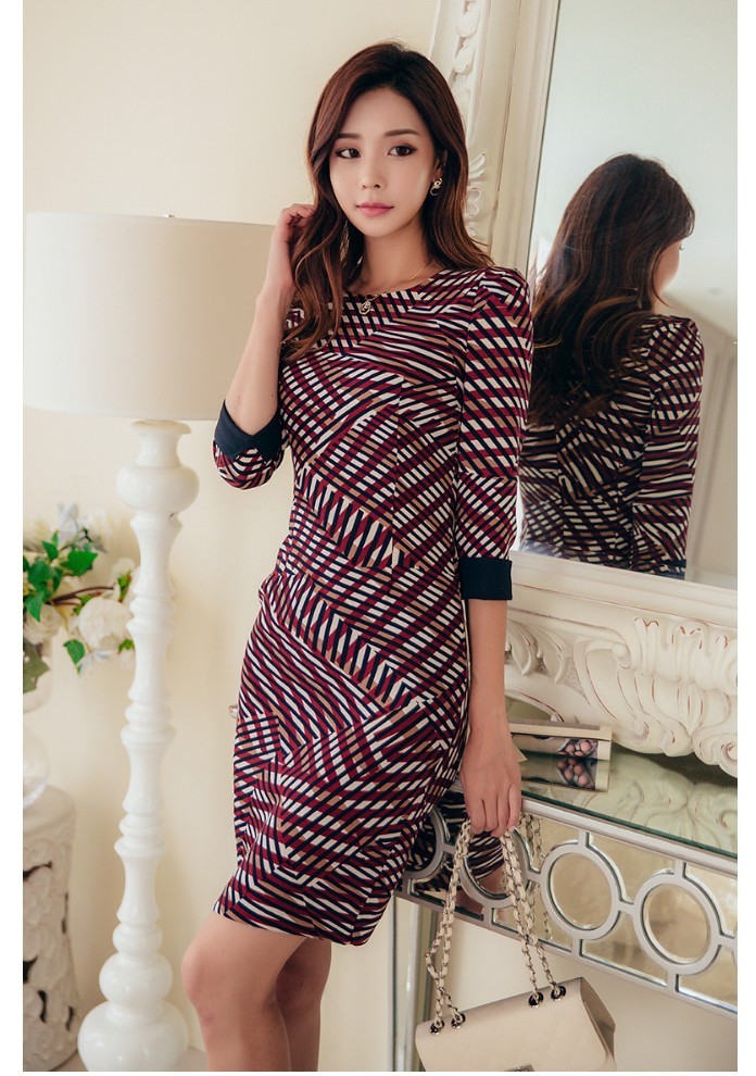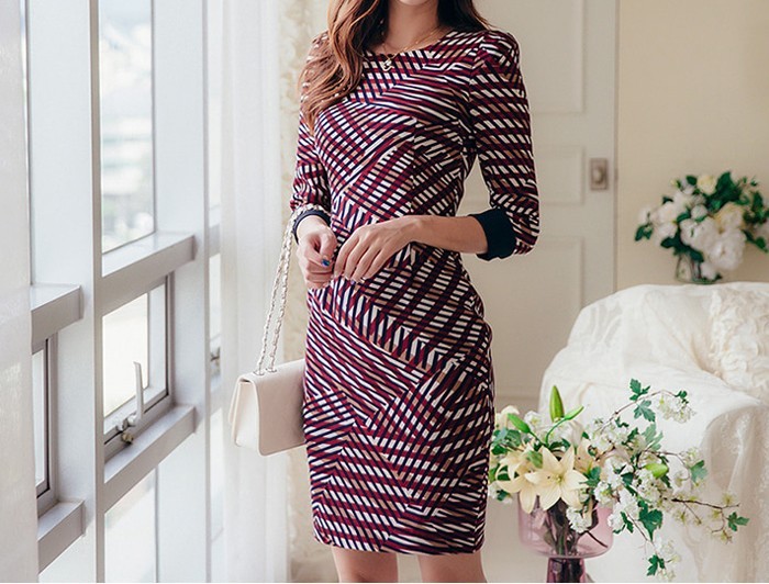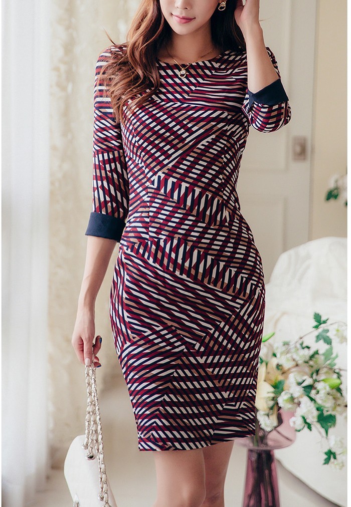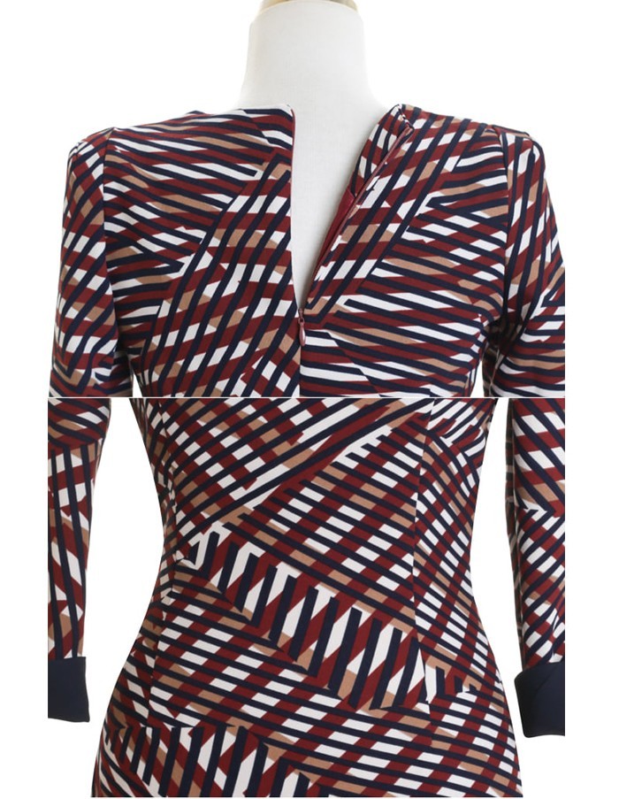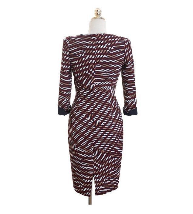 商品名:ワンピース タイトワンピース きれいめ ミニ丈 柄 7分袖