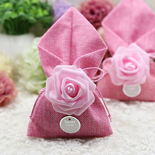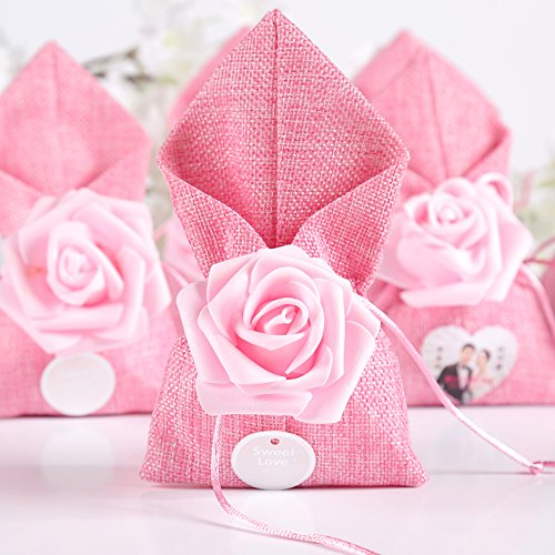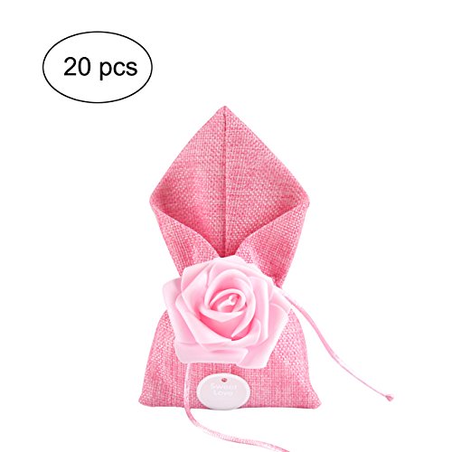 Moleya 20pcs Wedding Party Favor Candy Bags and Baby Shower Favors Gifts Bags(Pink, 3.54x6.88 inch)