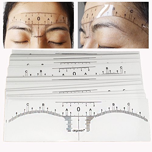 Airgoesin Upgraded 50pcs Disposable Adhesive Eyebrow Microblading Ruler Guide Sticker Tape Tattoo Template Measure Beauty Tool