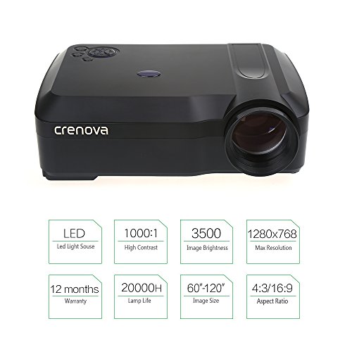 Crenova 2016 New Model - XPE650 HD Home Projector *It is an upgraded model of XPE600 released in 2015, the Native Resolution is upgraded from 800*480 to 1280*768; Brightness is upgraded from 2600 Lumens to 3500 Lumens.