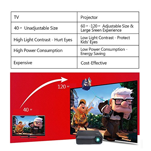 *4.Large Screen Experience: 60-120 Inches. Your eyes will be more comfortable seeing this projection display than TV.