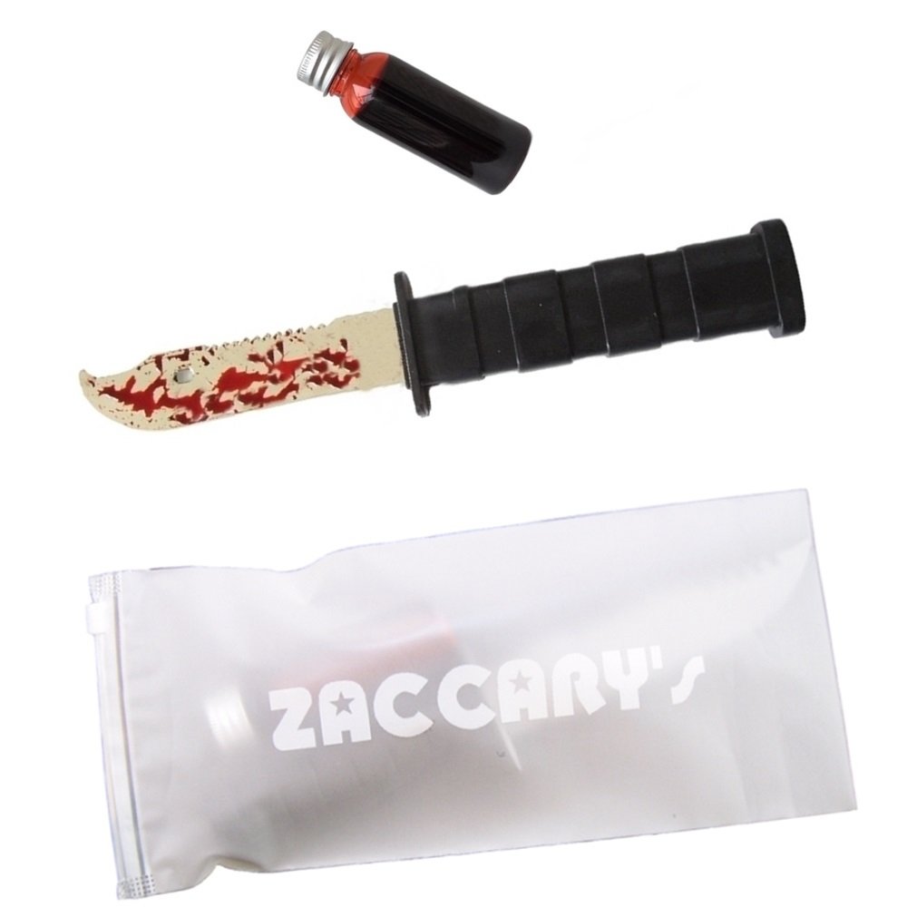Because it is possible to decorate both imitation knife and mask with set of blood glues