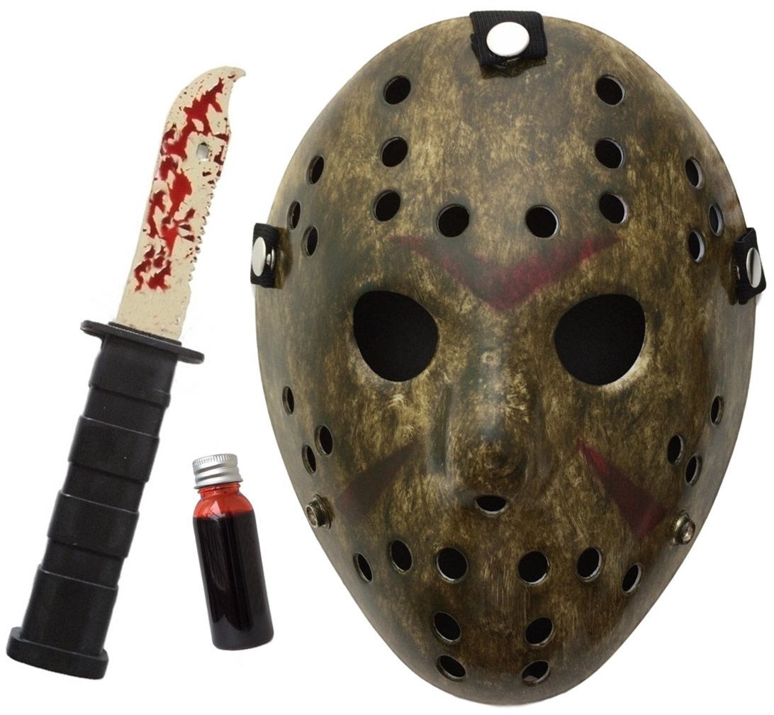 + Imitation Knife + Blood + Shielding Waterproof Bag Total 4 Pieces Set Friday the 13th Halloween Masquerade Party Cosplay Mask Event