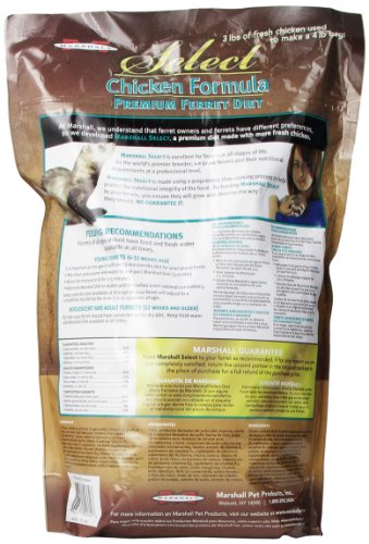 Ferrets are strict carnivores and require meat-based protein. Marshall Select Ferret Diet combine the freshest meat ingredients with low temperature processing to make them the best ferret food available.Feature