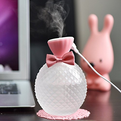 WONFAST 300ml USB Mini Ultrasonic Crystal Perfume Bottle Aroma Oil Diffuser Air Aromatherapy Humidifier Mist Maker (Pink)
