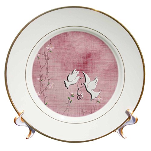 3dRose cp_216651_1 White Doves Wedding Rings Ribbon Pink Flowers Porcelain Plate, 8"