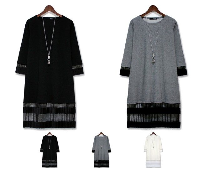 シースルー プリーツ 切替 ワンピース♪