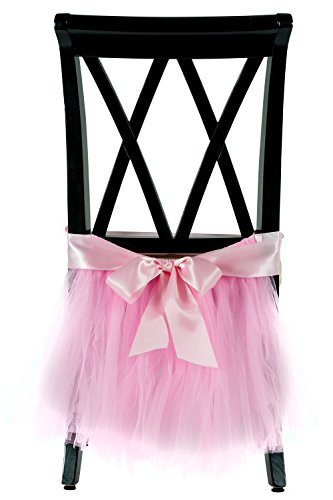 Handmade Tulle Tutu Chair Skirt with Sash Bow for Party, Wedding & Home Decoration (Pink)