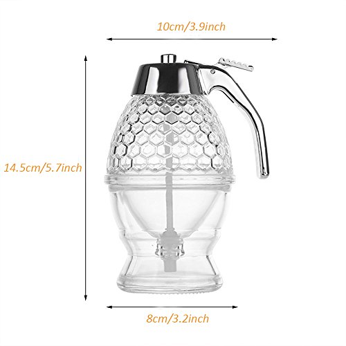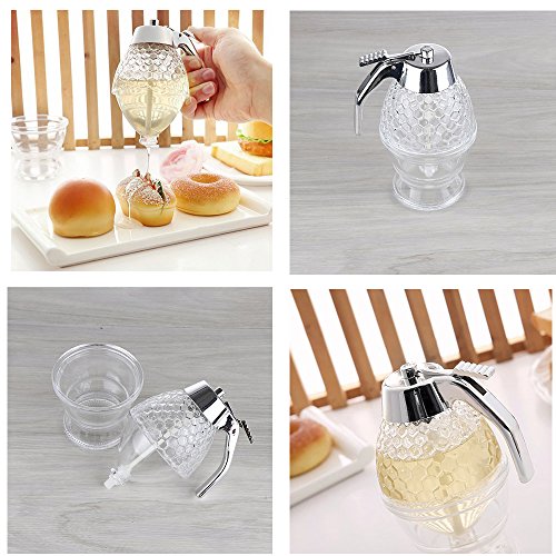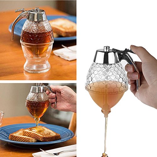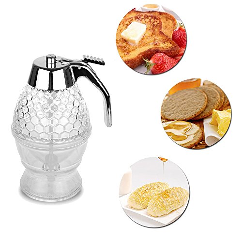 More Features: * Brand New and high quality, making your honey immediately available * Honeycomb design is on acrylic glass makes this an attractive addition to the breakfast table * Holds up to 8 Ounces of honey, syrup, or any dispensable liquid, saving you the hassle of constantly refilling * Stylishly combines plastic acrylic and stainless steel to enhance visual appeal * Durable construction guarantees re-usability * Versatile Convenient: perfect for number of uses in the kitchen while baking and cooking, add a touch of golden sweetness to your favorite baked breads, toasts, biscuits, fruit, yogurt, and more. * 12 Months Warranty: If you have any questions with the product, just feel free to contact our seller support. We check e-mails everyday and promise you the best solution
