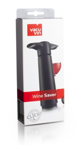- Feature : Wine pump for preserving the flavor of opened wine for up to 10 days / Audible click indicates an optimal vacuum seal / Ergonomically designed handle ensures comfortable, slip-free use / Includes 2 airtight stoppers; works with both red and white wines / Measures approximately 2-4/5 by 1-2/5 by 5 inches / Gift Pack includes onne Wine Saver Pump in Black and 2 rubber stoppers / Keeps wine fresh for up to 2 weeks / Pump removes air from the bottle of wine, and the rubber stopper seals the bottle / Re-usable; hand wash only / Wine Saver Giftpack in Black by Vacu Vin