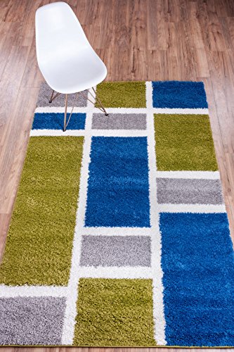 -. Title : Well Woven Madison Shag Geo Concept Green Blue Modern Geometric Area Rug 3'3'' X 5'3''