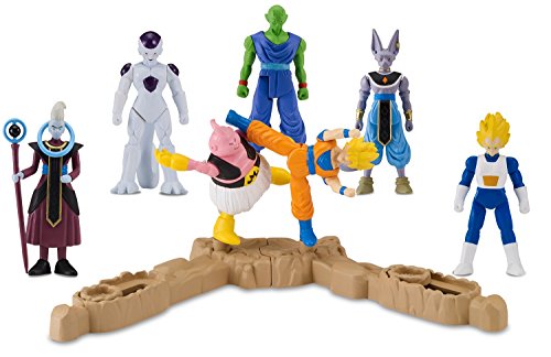 -. Feature : These 2.5" figures may be small in stature, but they're big on battle action. / Place your figure on a spinner stand, harness your finger fury, and knock your opponent's figure off their spinner before they knock you off yours! You can even combine additional spinners to battle up to three opponents at once. / The Blind Pack contains one randomized figure. / Possible characters include: Super Saiyan Goku, Super Saiyan Vegeta, Frieza, Beerus, Whis, Piccolo, and Majin-Buu. / Each figure sold separately.