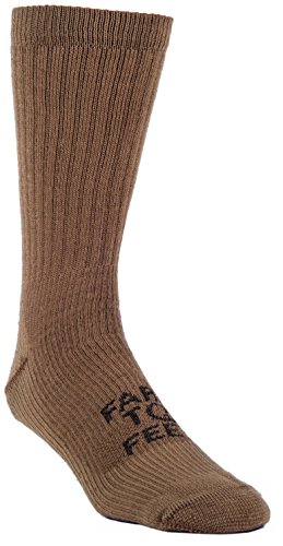 -. Binding : Apparel -. Brand : Farm to Feet -. Department : unisex -. Feature : Merino wool is soft, itch-free, naturally odor and bacteria resistant, cool in the summer and warm in winter / Reinforcing yarns woven into the stretch shell increase durability, while wool fibers sit closer to the skin for maximum insulation - outer? / Top-to-toe cushioning along the instep and shaft increases comfort, protects and insulates the foot from stiff boot tongues and uppers of heavy boots / Full-density cushioning provides better insulation, wicking, impact protection and faster moisture absorption to keep you dry and reduce friction / Reinforced construction and low-stress seam placement reduce wear and tear, increasing the life of the sock -. Label : Farm to Feet -. Manufacturer : Farm to Feet -. Model : 9557 -. ProductGroup : Sports -. ProductTypeName : OUTDOOR_RECREATION_PRODUCT -. Publisher : Farm to Feet -. Studio : Farm to Feet -. Title : Farm to Feet Columbus Midweight Boot Socks