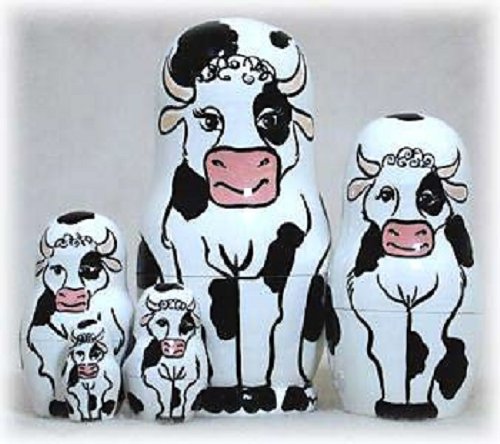 -. Title : Holstein Cow 5 Piece Russian Wood Nesting Doll Matryoshka Stacking Dolls Russia
