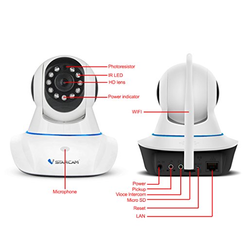 -. Feature : 1. WiFi CONNECTION& MULTIPLE USES: Without a specific display, you may use it as a baby monitor to view your baby's activity and safety. Even you are in kitchen, office or on business, using your Smartphone, Tablet, PC to check your monitoring, due to that it can be accessed via Wi-Fi. Able to be monitored by one or multiple devices at the same time, through the password identity feature. / 2. FULLY FUNCTIONAL AT ALL TIMES: The 720P High Resolution lens provide you with the best image & video recording quality, combined with Clear HD Video & Digital Automatic Zoom. Using it for video recording, fast forward and playback via local micro SD card. What are surP.R.Ising are its Wider angle 355 degrees (Horizontal) and Tilt 120 degrees (Vertical), Remote Pan/Tilt, Intelligent Digital Zoom, and IR LED Night Vision Up to 32 feet. / 3. STAY IN TOUCH WITH TWO WAY AUDIO: The built-in microphone and speaker allow voice communicating between the APP and camera sides. You can keep in touch with your baby anytime, whether you want to see his face, hear his voice or let him hear yours. This baby monitor also have Intelligent Motion Alerts feature, you can receive Message Alerts/Snapshots from Mobile App to ensure well being / 4. EASY TO PLACE & USE/ PLUG & PLAY SYSTEM: Quick install and setup this wireless surveillance camera, just connected with your phone, tablet or computer device in minutes, using the View App ("MIPC"). Beginning to your seamlessly stream video and playback recorded video of your home, your kids, your pets, or your business on the lary intel Camera. / SECURITY & WARRANTY:Financial level Encryption Technology, make you connect to any devices, via a secure, safe network. All cameras have CE, FCC and RoHS certified. Full one-year warranty support provided directly by Lary intel, please feel free to contact us if you need assistance. ----((Save 20% each on Qualifying items offered by Lary intel when you purchase 1 or more. ))