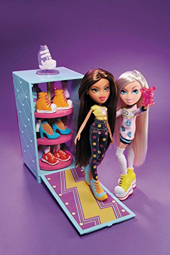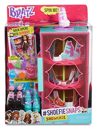 Bratz love their fab shoes. Display them in style with this carouseling shoe closet! Store and show off your shoe collection to your friends. Back panel opens out into a fashion runway! Product Features: • Includes 2 exclusive pairs of Bratz shoes, 5 Bratz charms to decorate the closet, a smart phone accessory and a smart phone case • Closet fits up to 9 pairs of Bratz Shoes • Spin the shoe on top to see the shelves carousel • Back panel of closet opens up into a shoefie runway • Ages: 5+ yearsFeature