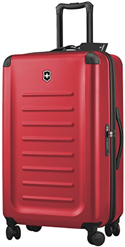 Rely on this lightweight, hard side case to accompany you on week long trips or when packing for multiple people. Comfort grip, one-touch, dual-trolley aluminum handle system locks into three different positions - 41 inch (104 cm), 39 inch (99 cm) and 37 inch (94 cm) - to accommodate travelers of various heights and adjusts when transitioning from pushing the bag on four wheels to pulling it on two wheels. Dual-caster wheels feature soft tread offering ideal traction for a smooth roll across any surface while also providing 360 degree maneuverability and zero weight-in-hand. Break-resistant 100% pure Bayer polycarbonate with stylish, scratch-resistant matte finish delivers superior strength for the highest level of performance. Corner guards and zipper bumpers provide added protection to areas of the case most prone to impact and abrasion. Zippered mesh divider wall stretches for easy packing. Y-shaped compression straps cover a greater surface area to keep folded items secure. Top haul handle for easy carrying. Integrated travel sentry approved lock allows U.S. TSA screeners to open the lock without destroying it, and relock it after inspection. Swiss tracker bag tracking program will reunite you with your bag anywhere in the world should it ever be lost - for free. The access lock combination recovery program allows you to register your lock combination on victorinox.com and recover it if it is ever forgotten. Removable id tag for security and convenience.Feature