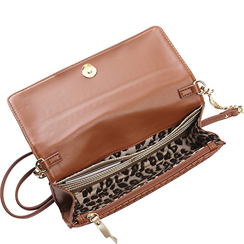 Feature : Flap over with magnetic snap closure / Chain-detail crossbody strap with a drop length of 24 inches / Detachable crossbody strap to convert to clutch or wallet / Back exterior features one slip pocket / Lined interior features one zipper pocket and 8 credit card slots