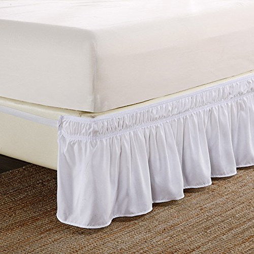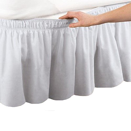 Ruffled Solid Bed Skirt,Wrap Around Style,Elastic Bed Wrap Ruffle Bed Skirt 18 inch Drop (Twin/Full, White)
