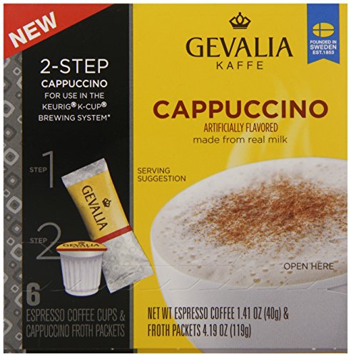 Gevalia Kaffe, 2-Step K-Cup & Froth Packets, 6 Count, 5.6oz Box (Pack of 3) (Cappuccino Espresso)