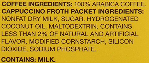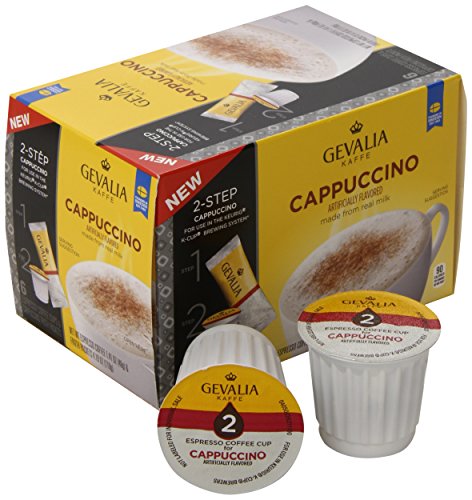 • •2-step Cappuccino; Made from real milk; 90 calories per combined cup and packet; For use in the Keurig K-Cup Brewing System; Artificially flavored