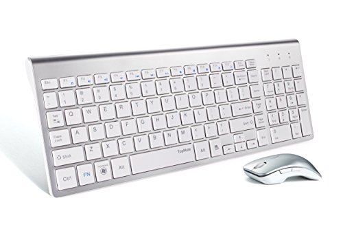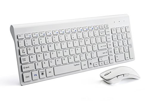 TopMate KM9001 Ultra Slim Portable Mute Wireless Keyboard and Mouse Combo, Office Wireless USB Mouse(White)