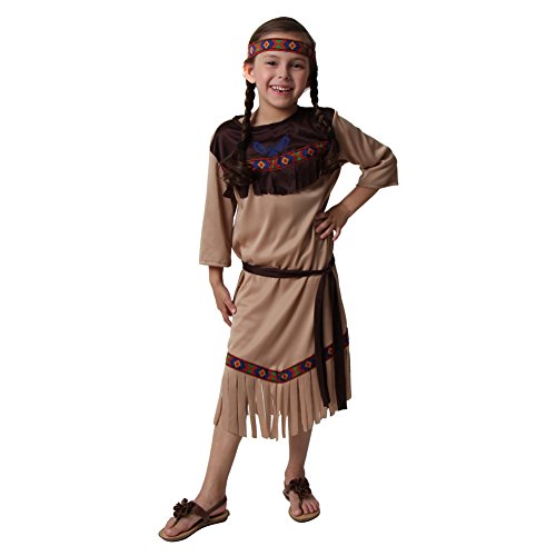 -. Brand : Making Believe -. Color : Brown -. Department : girls -. Feature : Native American costume set includes the dress, headband and sash / Fun for a Halloween costume, theme party favor, and everyday playtime or school dress up / Great addition to Thanksgiving holiday celebrations / Brown sheath dress style with small back closure, trimmed with fringe and brocade ribbon / Jersey knit fabric for a comfortable fit -. ProductGroup : Apparel -. ProductTypeName : CHILDRENS_COSTUME -. Title : Girls Native American Princess Costume (Choose Size)