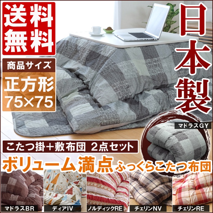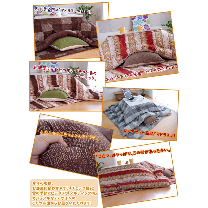 Rakuten 난로 이불 정방형괘 부세트 약185×185cm「마드라스/노르딕/최 ring/디아」【IT】 (괘이불&요)멋쟁이 난로 세트 캐주얼 체크 노르딕 일본제 난로 이불 세트