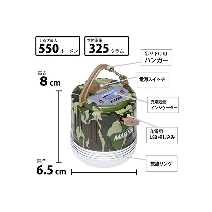 원본상품명: MAGNA(マグナ) 充電式 LEDランタン ハ?ドケ?ス リモコン付 迷彩 3WAY 550ル?メン 連?点?240時間