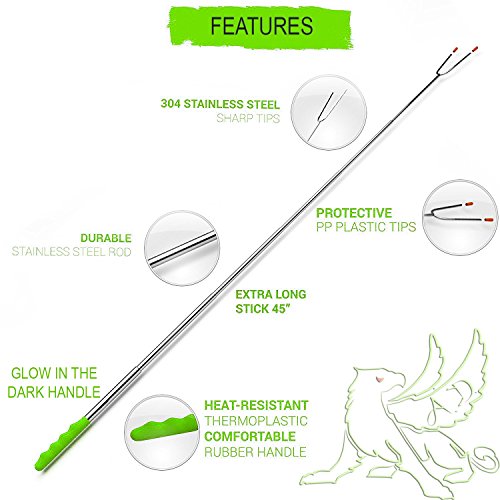 - High quality stainless steel extends from 10 inches to 45 inches to keep yourself and your family safe when roasting