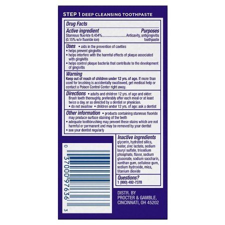 Package Quantity: 1 2 Minutes for a Whiter Smile. Experience brilliant whitening results with Crest 3D White Brilliance daily cleansing toothpaste and whitening gel system. The two-step system comes with a deep cleansing toothpaste and a whitening finisher. Step 1 cleans thoroughly and Step 2 polishes and whitens to keep your smile up to 99% as white as a professional polish*. You can feel the difference after just one use. *with daily use. Stain assessed 4 weeks after a dental cleaning. If you are not satisfied with your results, Crest 3D White will send you a pre-paid card in the amount of your purchase. Simply return your receipt and copy of package UPC within 60 days of purchase. Call 1-800-208-0169 for more information. www.crest.com