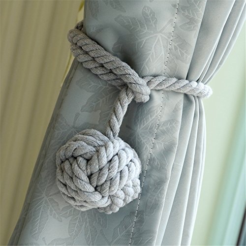 2 Pieces Fine Hand Tied Curtain Clip, Buckle Holdback Fabric Drapery Tassels Curtain Tiebacks / Tassel Window Cotton Rope Tie Ball Back Accessories (Gray)