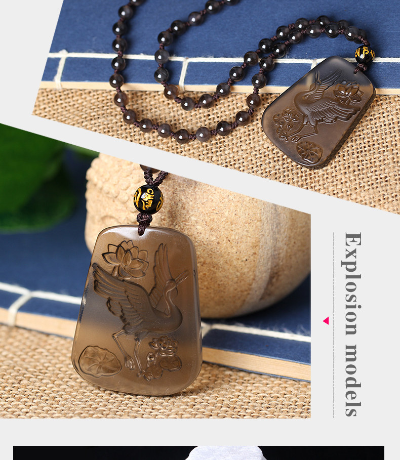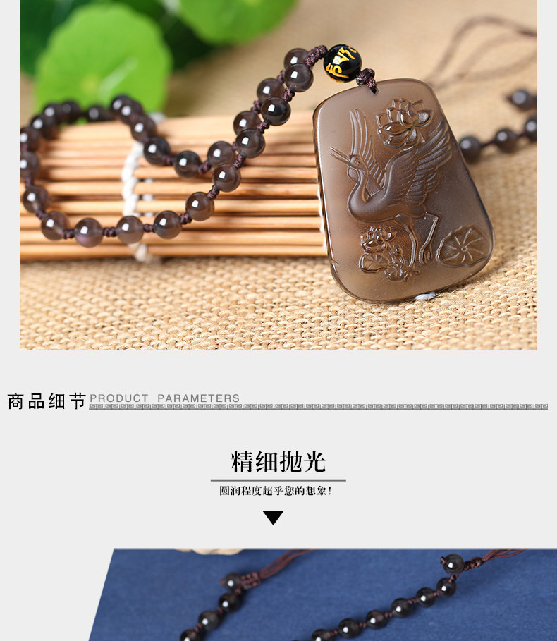 开光十二生肖属狗慈元灵阁鹤利年年玉坠冰种黑曜石吊坠