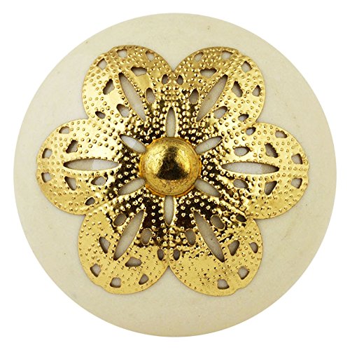 IntradeGlobal Ivory Gold Filigree Ceramic Knob, Set of 2