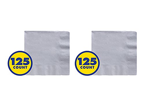 2 Pack of 125 Amscan Big Party Pack Silver 5in x 5in Paper Beverage Napkins bundled by Maven Gifts