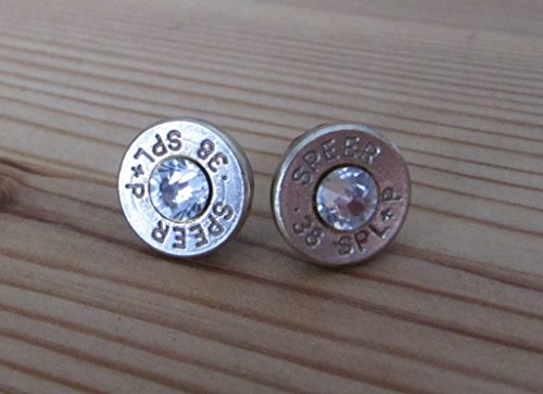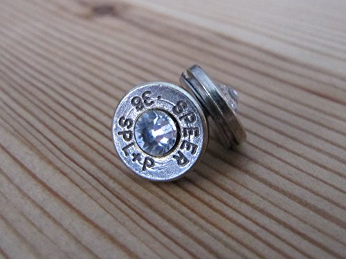 -. Title : 38 Special Bullet Earrings with Clear Swarovksi Crystal Accents - AP.R.Il Birthstone - Bullet Jewelry