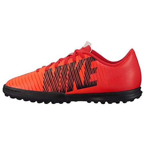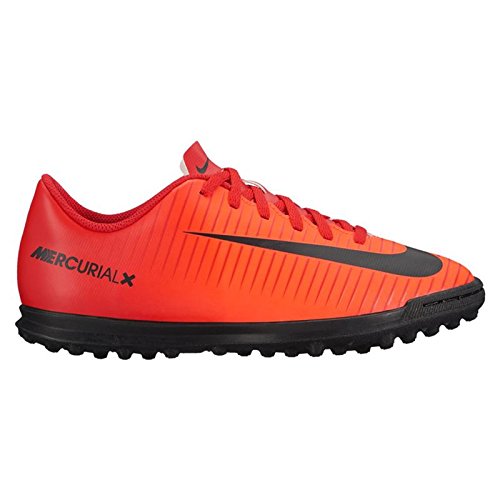 Studio : Nike Publisher : Nike Binding : Misc. Product Description Kids' Jr. Mercurial X Vortex III (TF) Turf Football Boot Kids' Jr. Mercurial X Vortex III (TF) Turf Football Boot provides the fit, touch and traction needed for today's fast-paced game with rubber studs that enhance multidirectional traction on turf surfaces. Synthetic leather upper enhances durability and ball touch. Internal cage provides a locked-down fit. Treading on rubber outsole is tuned for turf surfaces. EVA foam in the heel offers responsive cushioning. Synthetic Leather 0