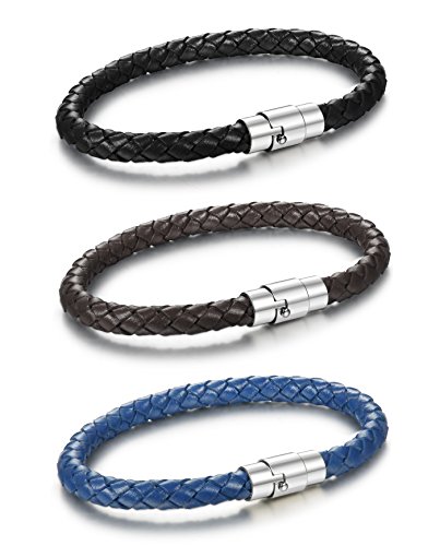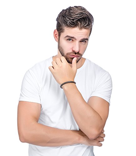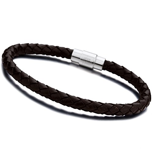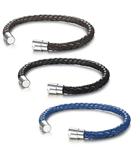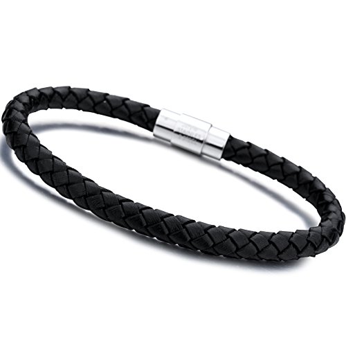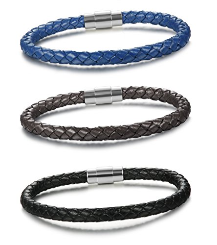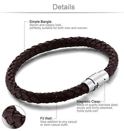 -. Title : Jstyle Stainless Steel 6mm Mens Womens Braided Bangle Leather Bracelet Rope Magnetic-Clasp 7.5-8.5 Inch