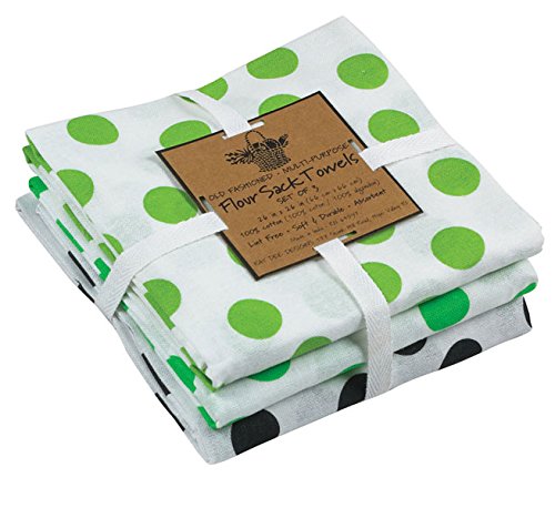 Kay Dee Designs A8242 Green & Black Polka Dot Flour Sack Towels (Set of 3)