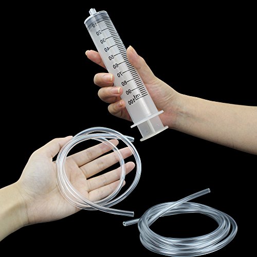 Momok large plastic Syringe ,100ml Syringe with 80cm(31.5inch) and 160cm(63inch) Handy Plastic Tubing for dispensing, injection, filtration