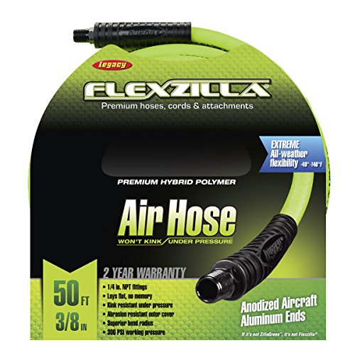 Flexzilla Air Hose, 3/8 in. x 50 ft., 3/8 in. MNPT Fittings, Heavy Duty, Lightweight, Hybrid, ZillaGreen - HFZ3850YW3