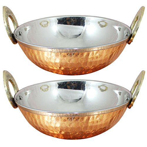 -. Feature : SET OF 2 TRADITIONAL KARAHI BOWLS Traditionally used to serve biryani, curry & daal; Also unique bowl for all types of cuisine / AUTHENTIC INDIAN SERVING DISHES Measure 6.5 Inches in diameter and 2.6 inches height; Weight 450 gram; Capacity 600 mL; Total weight 900 Gram / PREMIUM MATERIALS Copper bowl exterior lined with heavy-duty stainless steel on the interior / DOUBLES AS ATTRACTIVE KITCHEN DECOR Gorgeous hammered copper finish makes these bowls showpieces / UNIQUE COPPER ANNIVERSARY GIFTS Delight a couple or a special lady for her wedding anniversary